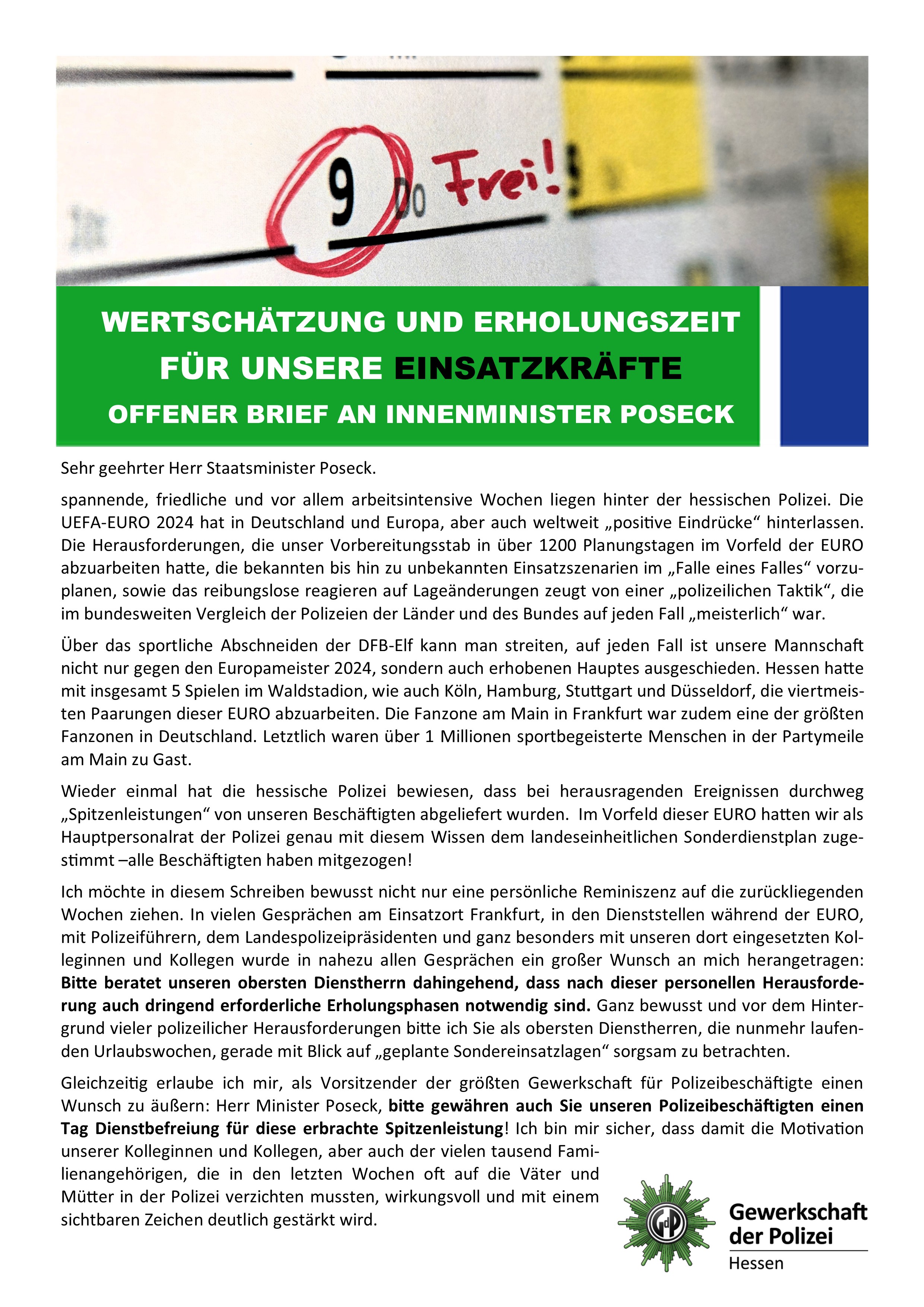 Nachlese „UEFA-EURO 2024“ – Offener Brief an Innenminister Prof. Dr. Poseck